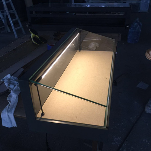 展柜材质:矩形方管、冷轧板等焊接成型,表面高温静电喷涂工艺防潮防锈。